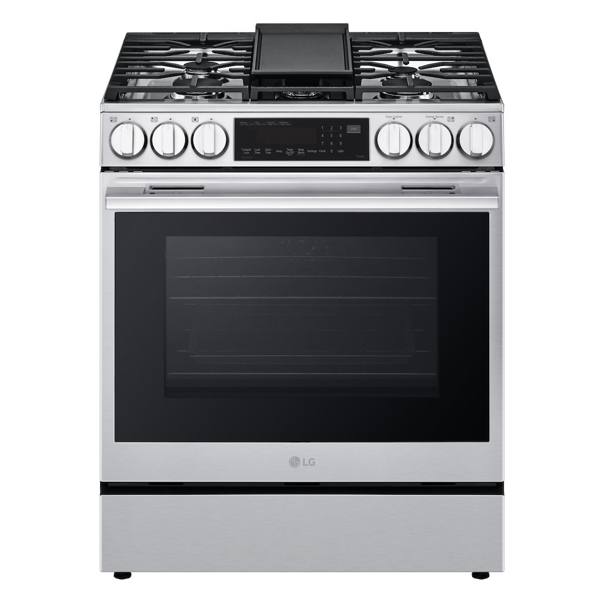 From big pans to small pots, oblong cookware to oversize griddles, the wide grate design of this LG gas range has room for them all. Rectangular grates cover more of the cooktop surface so you can use all 5 burners at once without performing a balancing act with your pans. Perfectly practical—the heavy duty grates extend from edge to edge to blend in with surrounding countertops and lend a premium look to your kitchen.